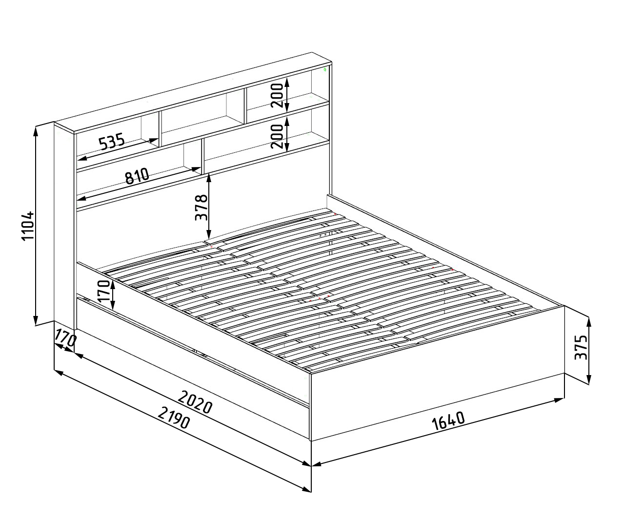 Габариты: ширина 2190 х высота 1104 х глубина 1640 мм
