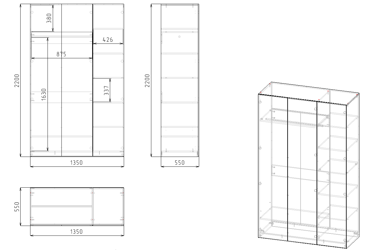 высота 2200 х ширина 1350 х глубина 550 мм