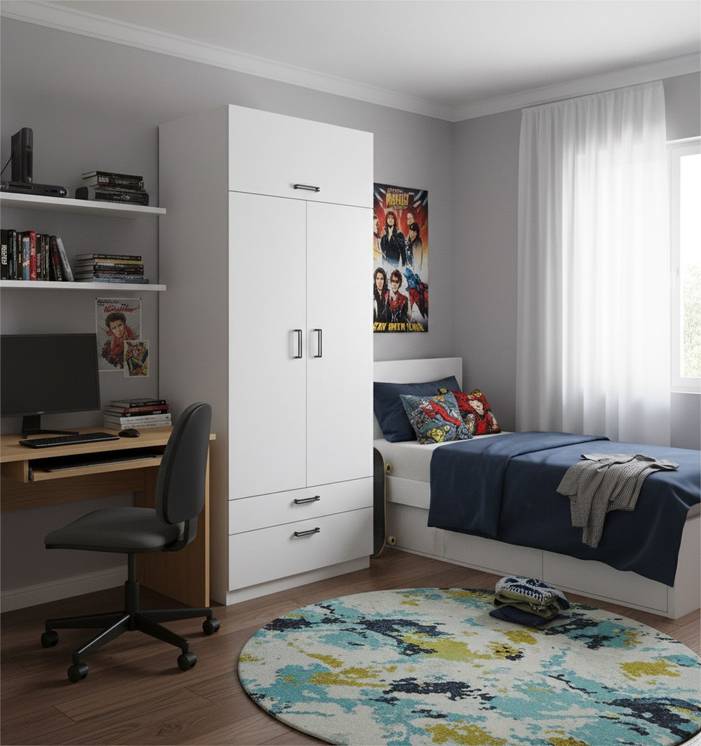 Идеально вписывается в детскую комнату, шкаф очень практичный и вместительный, по своим габаритам отлично подходит и для небольших комнат.