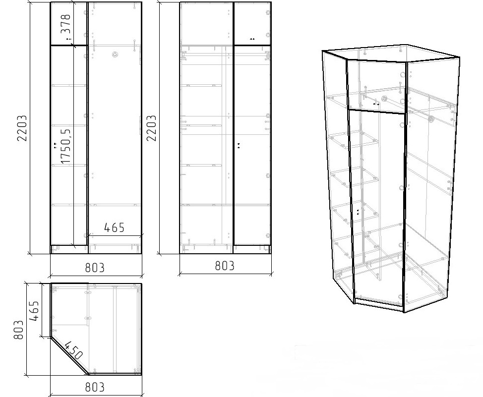 Габариты шкафа: высота 2203 х глубина 465 х ширина 803х803 мм