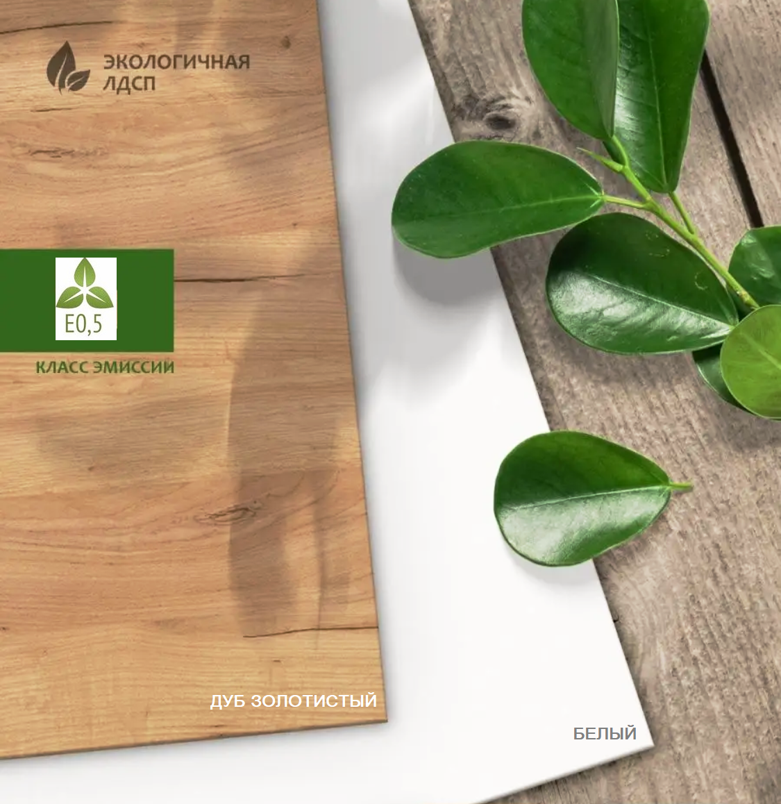 ЛДСП Е0,5. Толщина 16 мм. Цвет: дуб золотистый+белый |