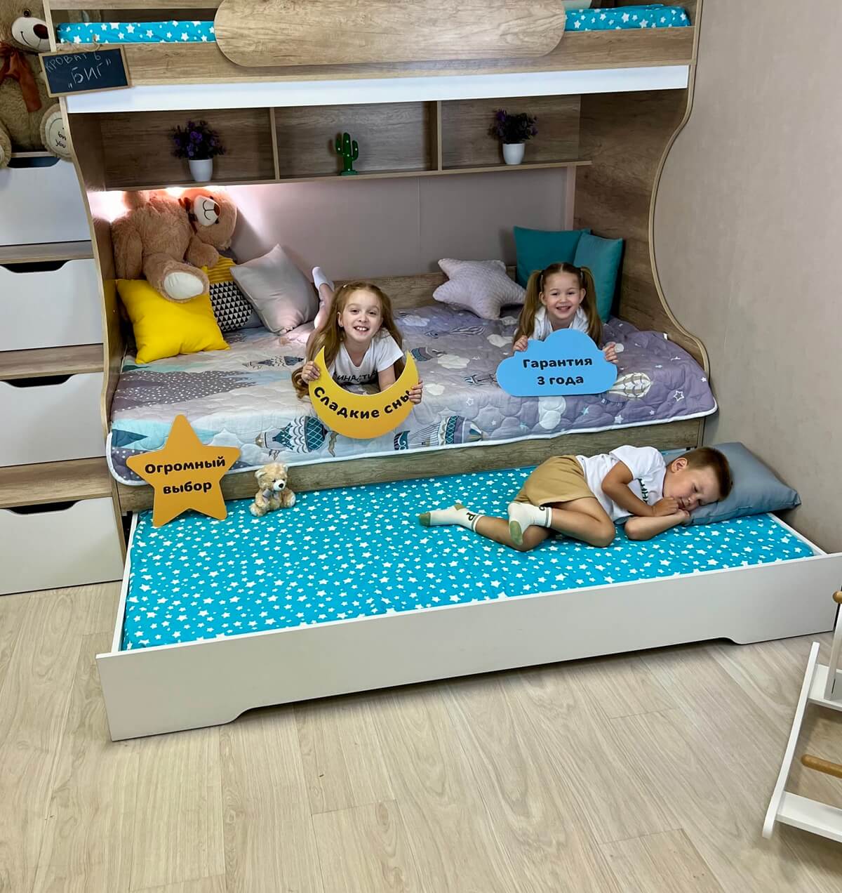 Просторная двухъярусная кровать БИГ с дополнительным третьим спальным местом