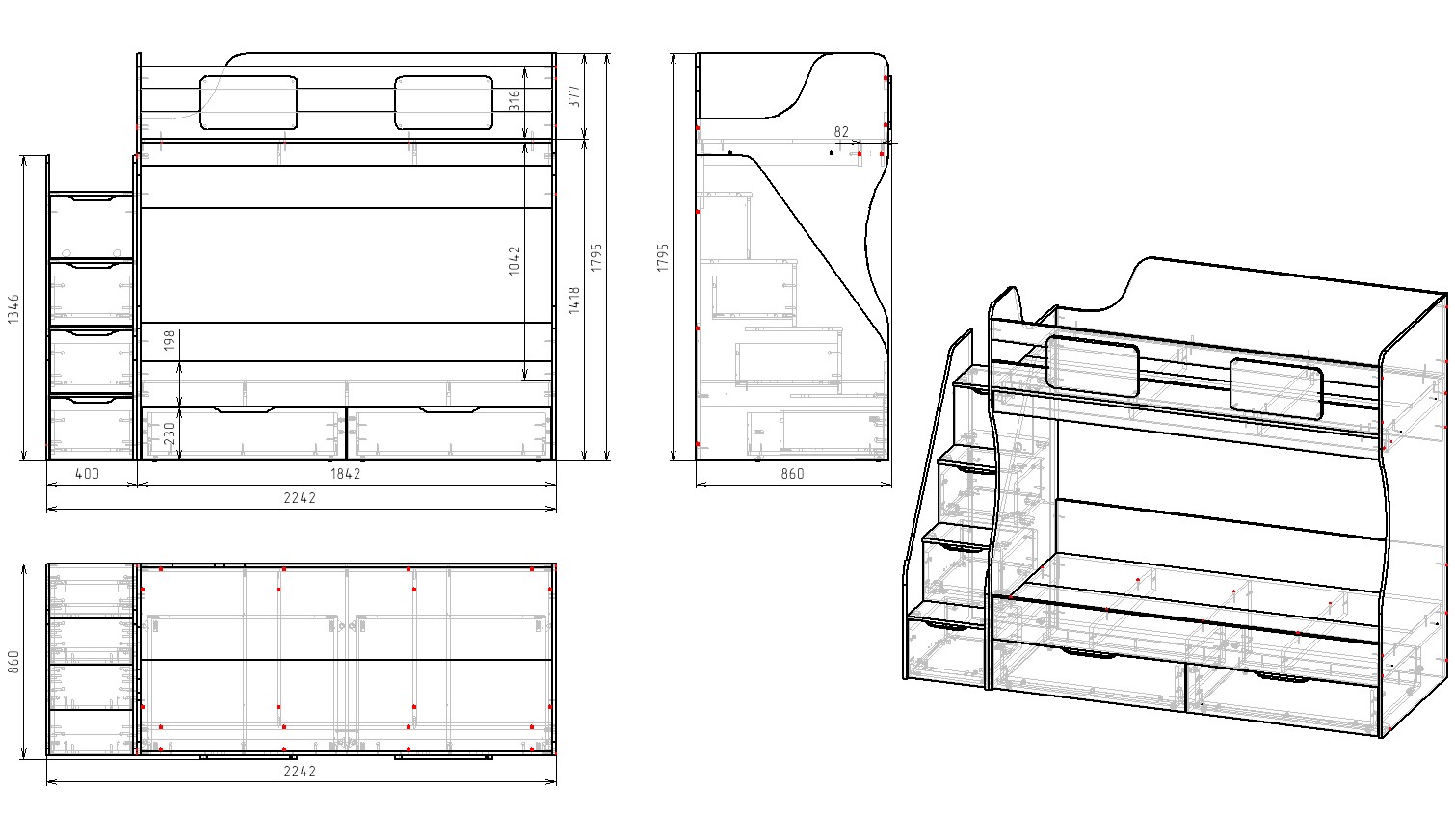 Высокая нагрузка на спальные места. Прочные ящики! Высокий, безопасный бортик |