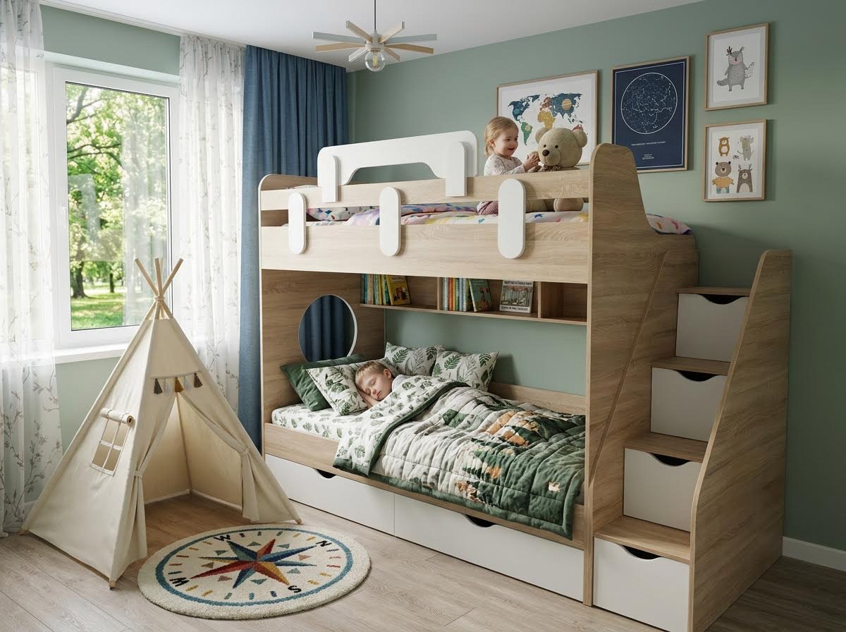 Двухъярусная кровать Фортуна с удобной лестницей и комфортной высотой.