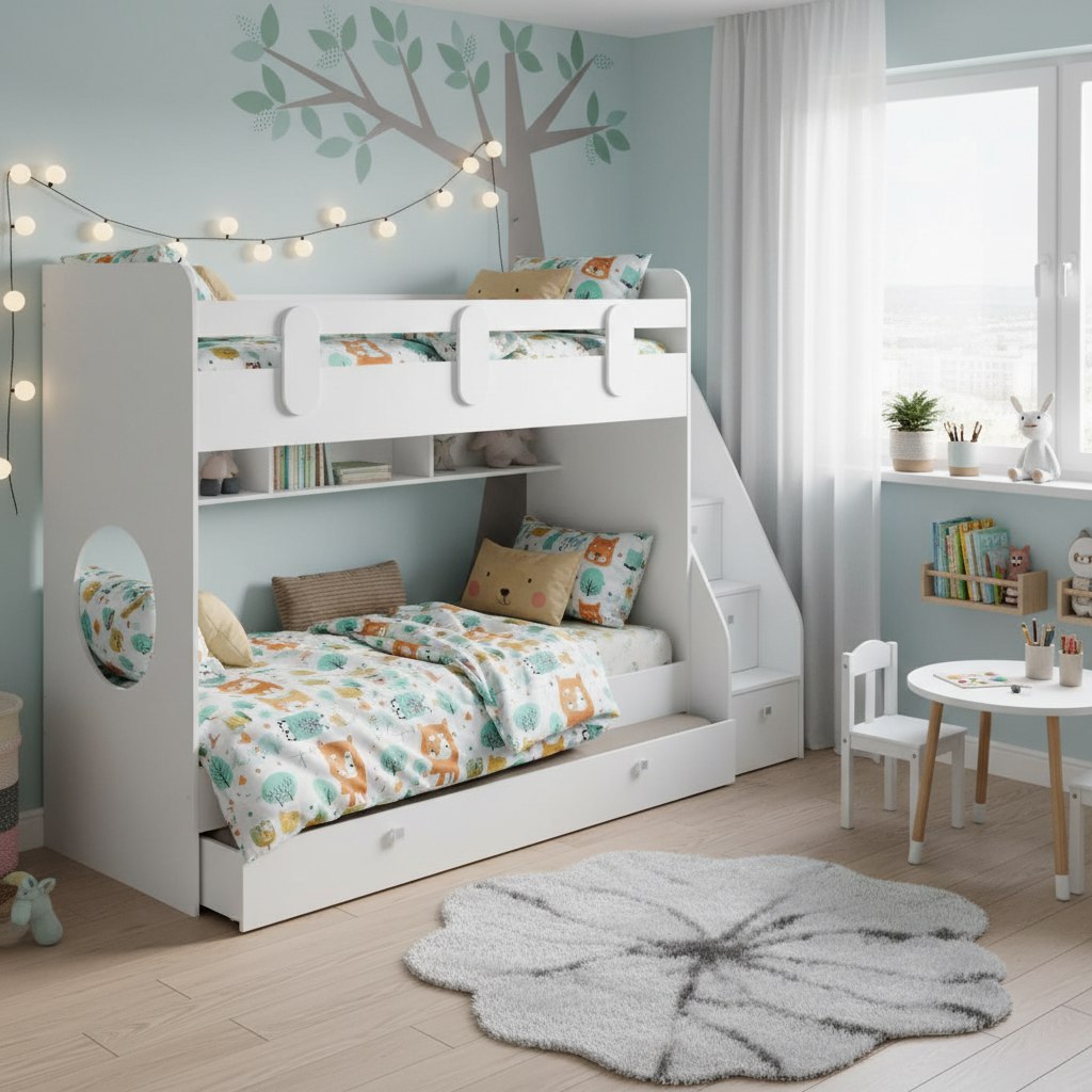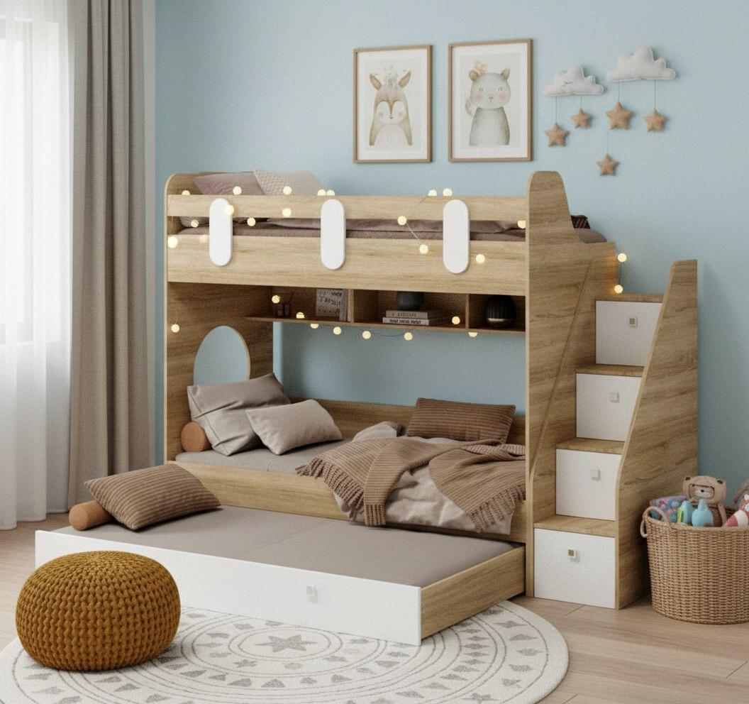 Высокая нагрузка на спальные места. Безопасный, высокий бортик. Прочные ящики! |