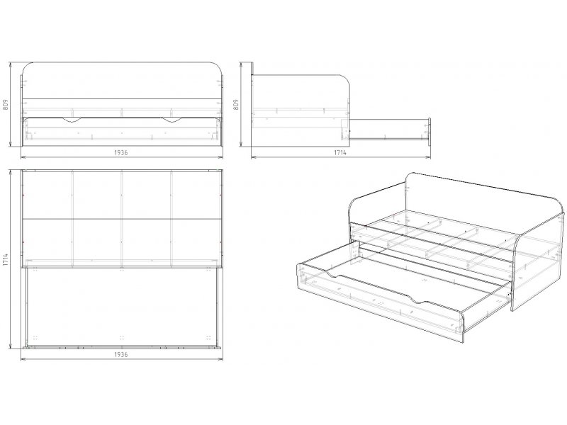 Спальное место верх: 190х90 - нагрузка на спальное место до 150 кг