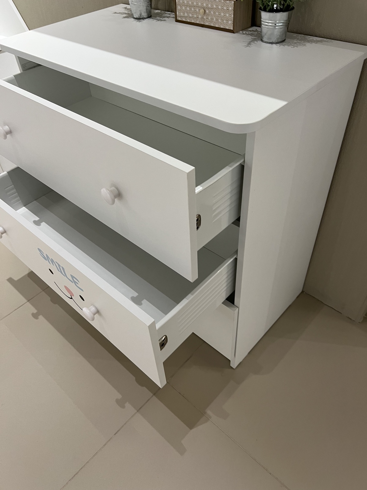 Торцы комода закруглены и обработаны ударопрочной кромкой ПВХ.