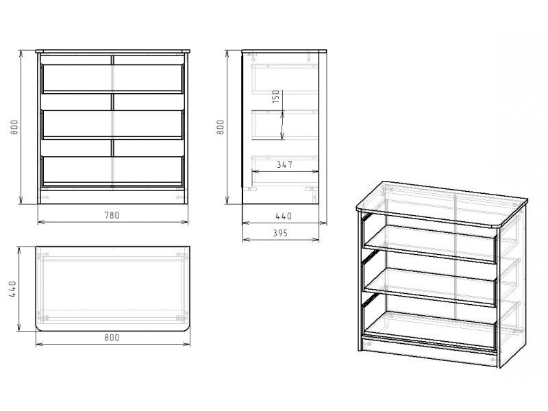 Выдвижные ящики комода изготовлены с применением метабоксов, что делает изделие надежным и практичным.