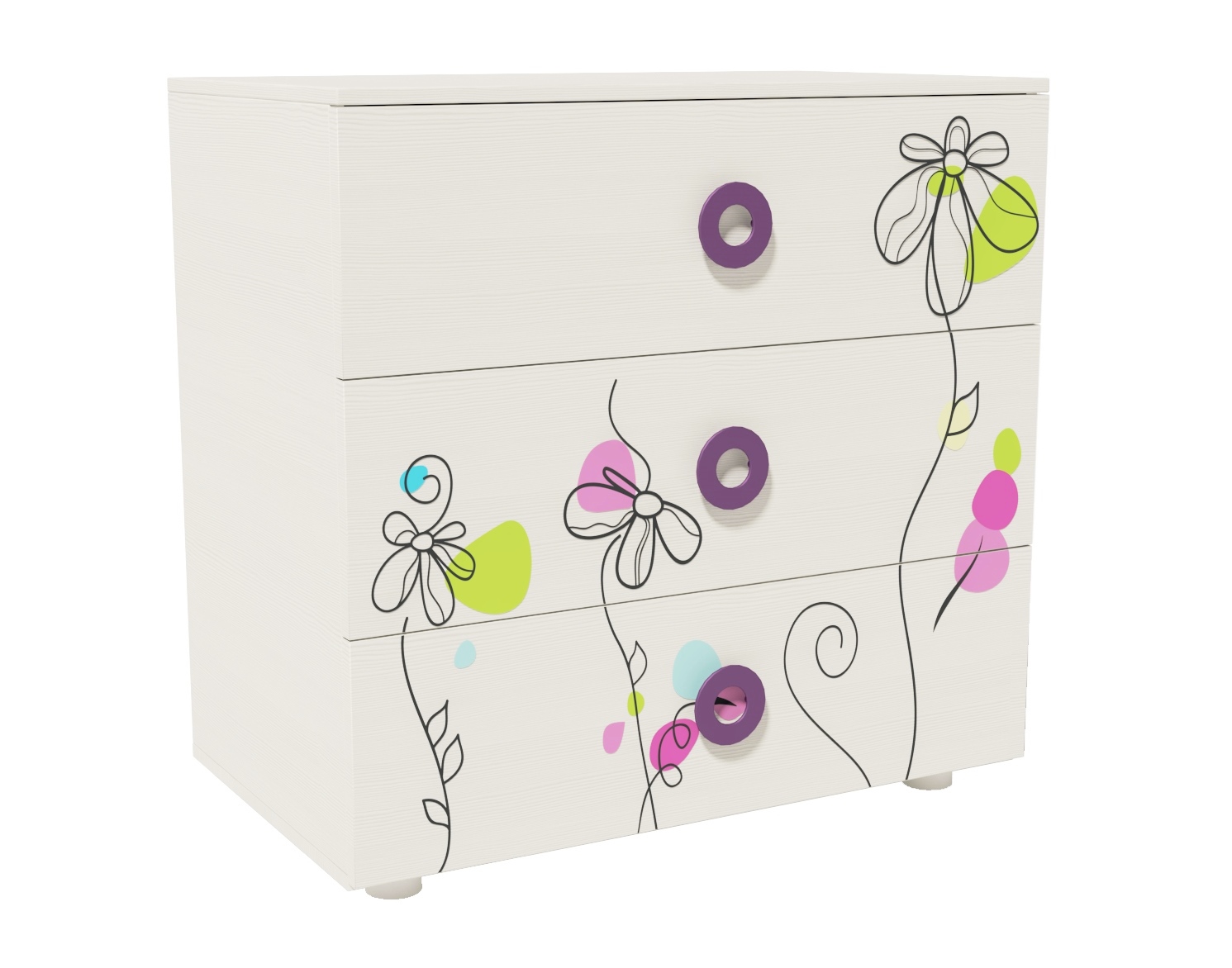 Комод выполнен из сертифицированного, качественного, экологически чистого ЛДСП Е0,5 в белом цвете с принтом.
