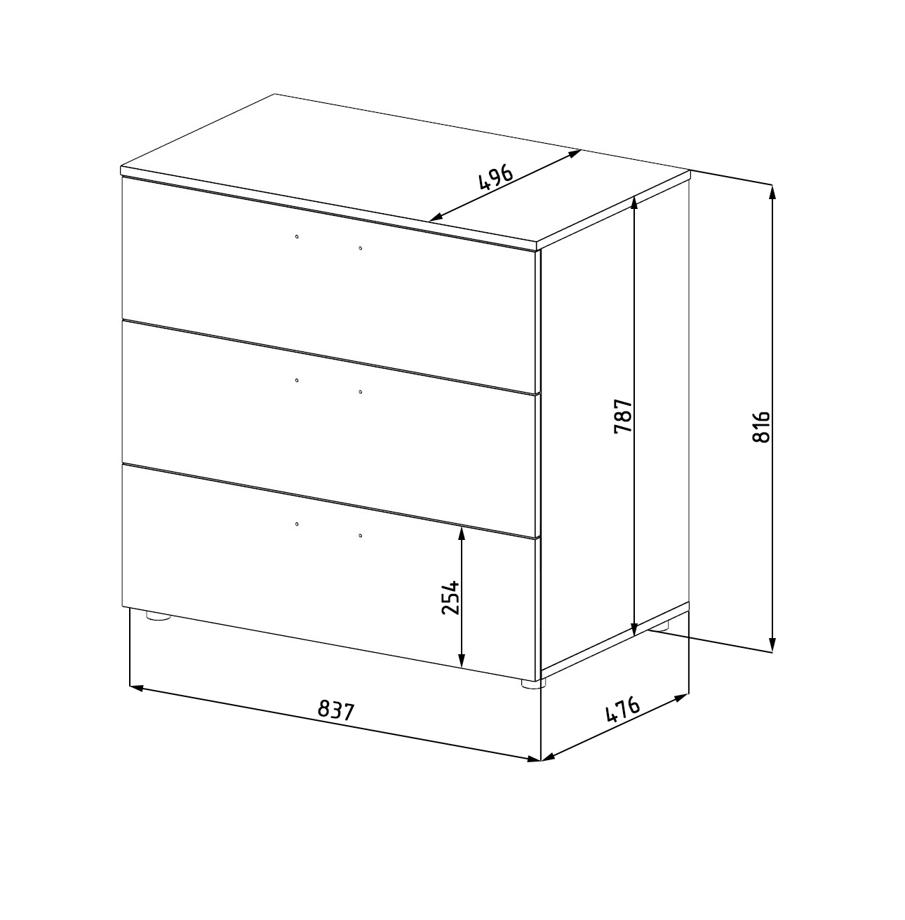 Габариты комода: ширина 842 х глубина 500 х высота 814