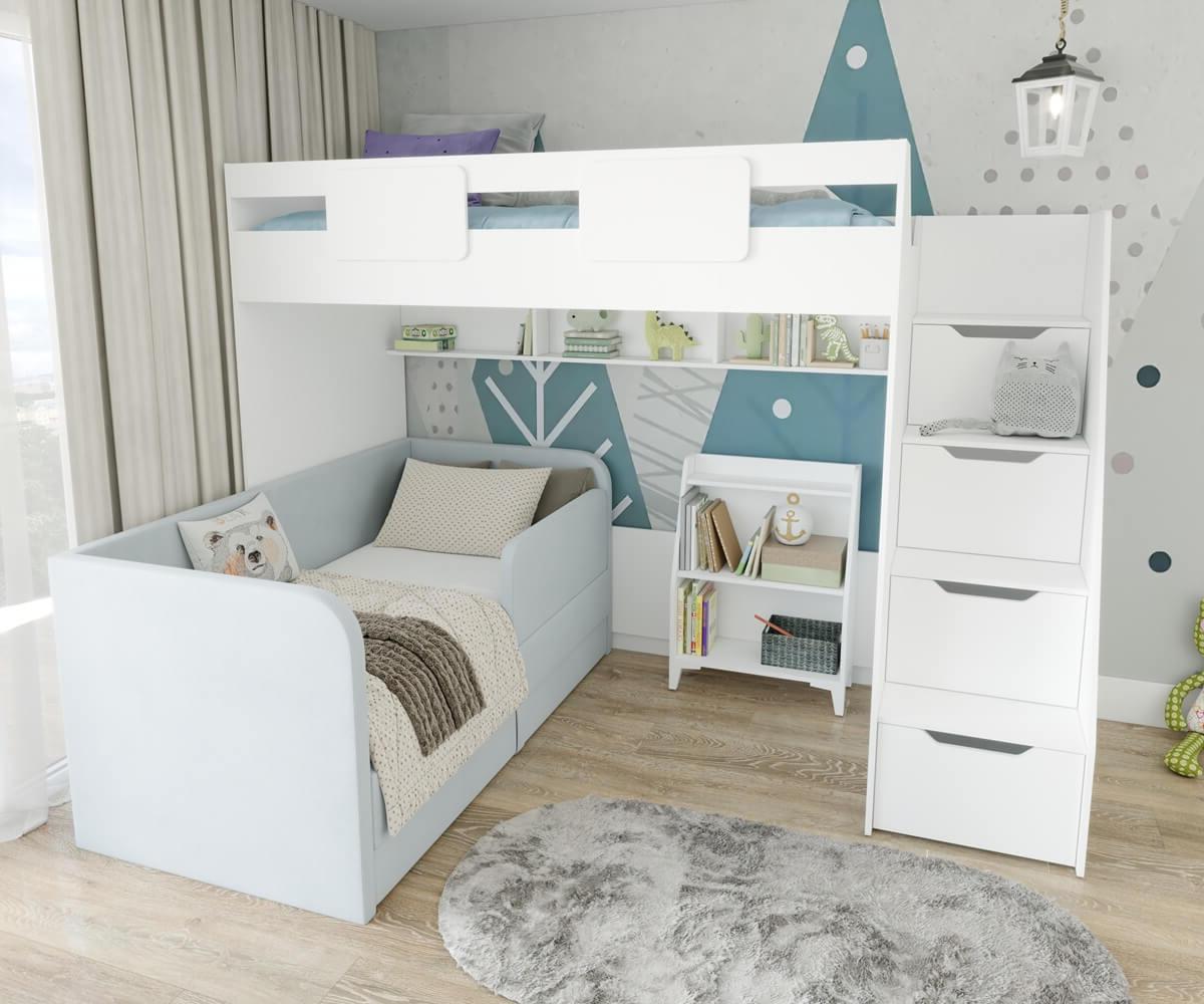 кровать-чердак Мозаика-2 + мягкая кровать Nepos + стеллаж детский Уют-5
