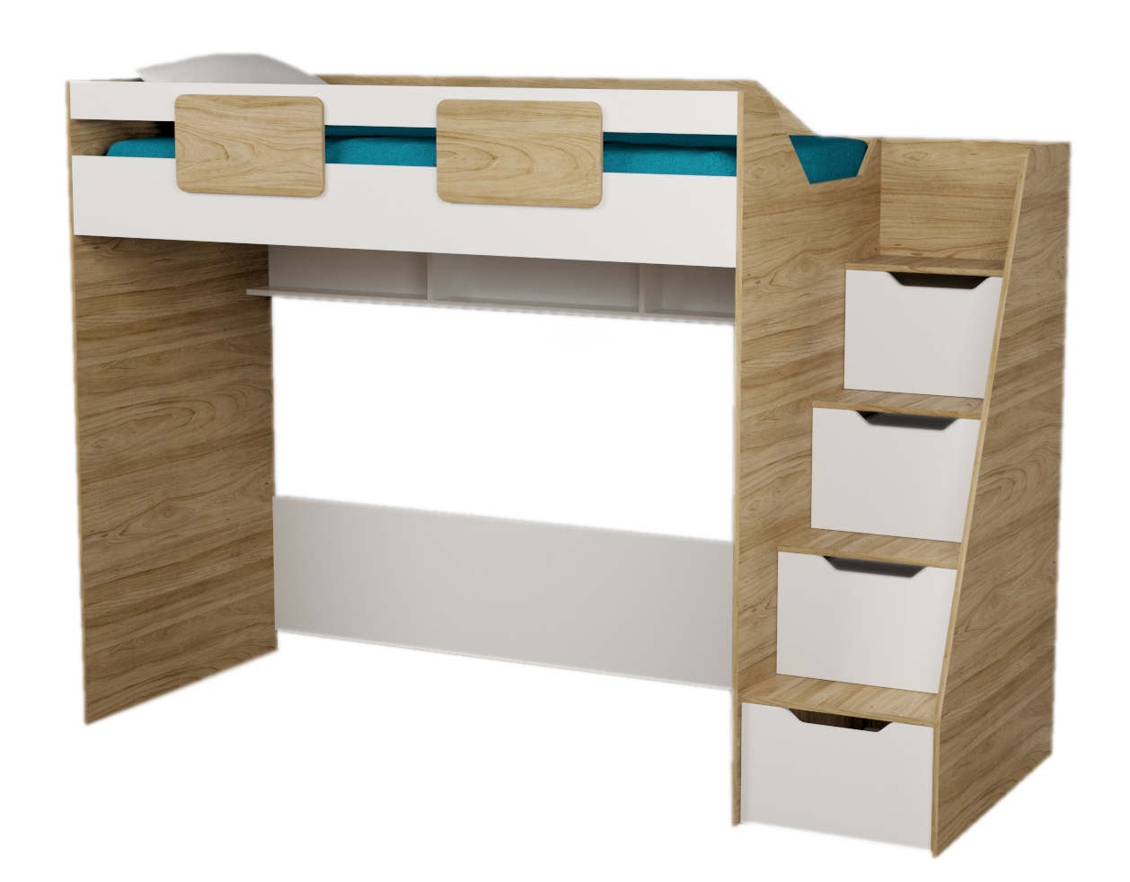 кровать-чердак Мозаика (правая/левая лестница) + Стол Мозаика + Тумба-комод Мозаика
