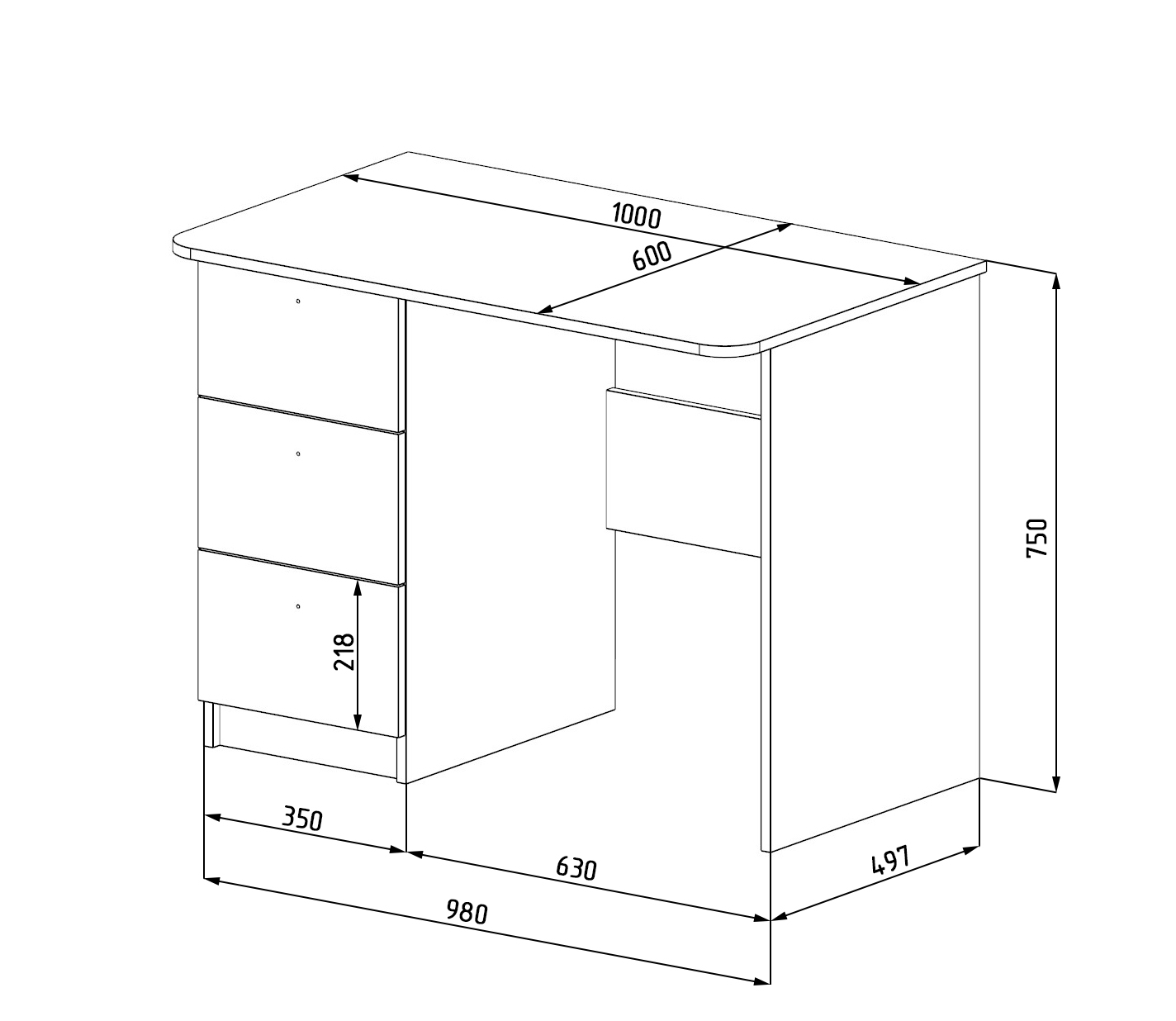 Габариты стола: ширина 1000 х высота 750 х глубина 600
