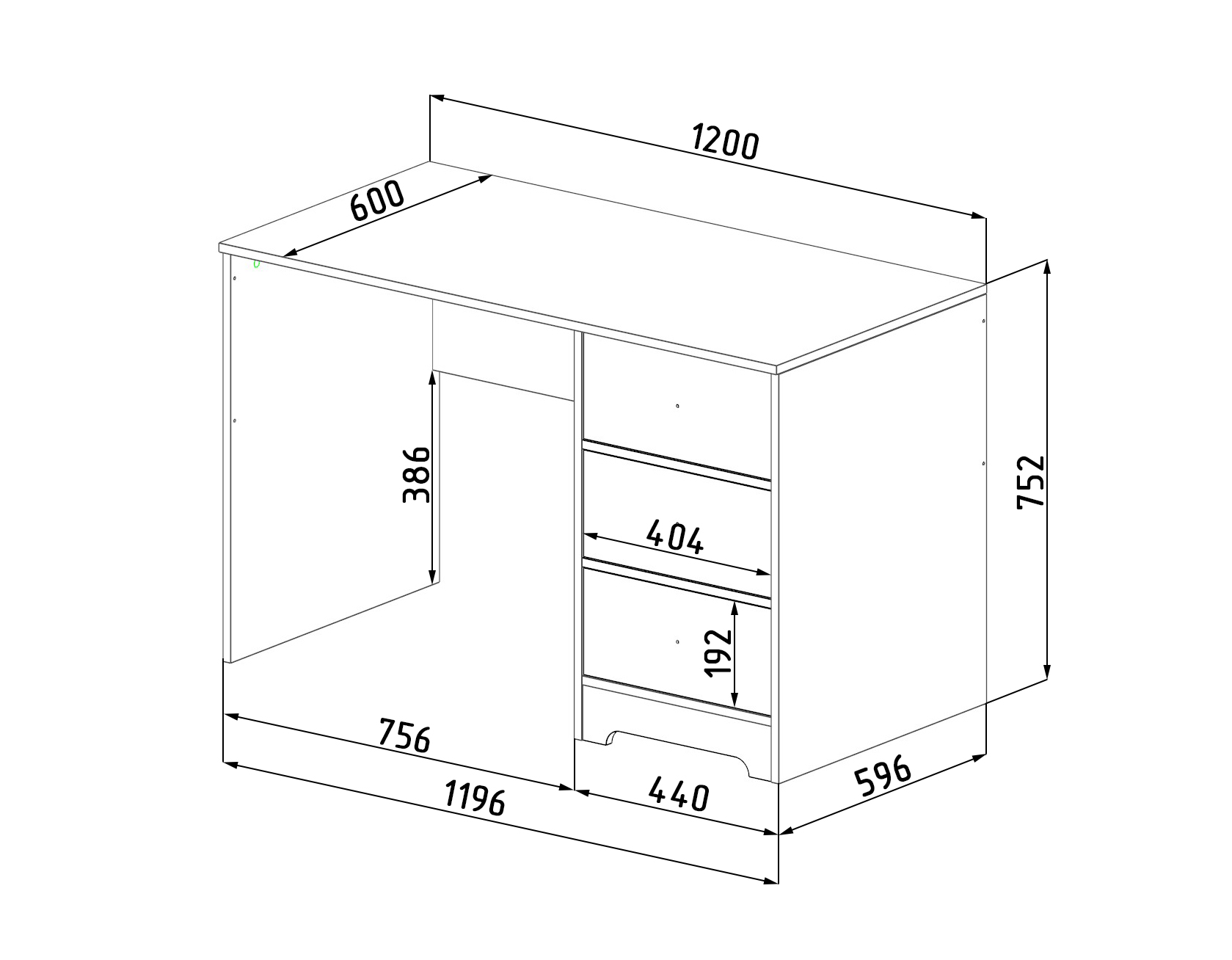 Габариты стола: ширина 1200, глубина 600, высота 752 мм