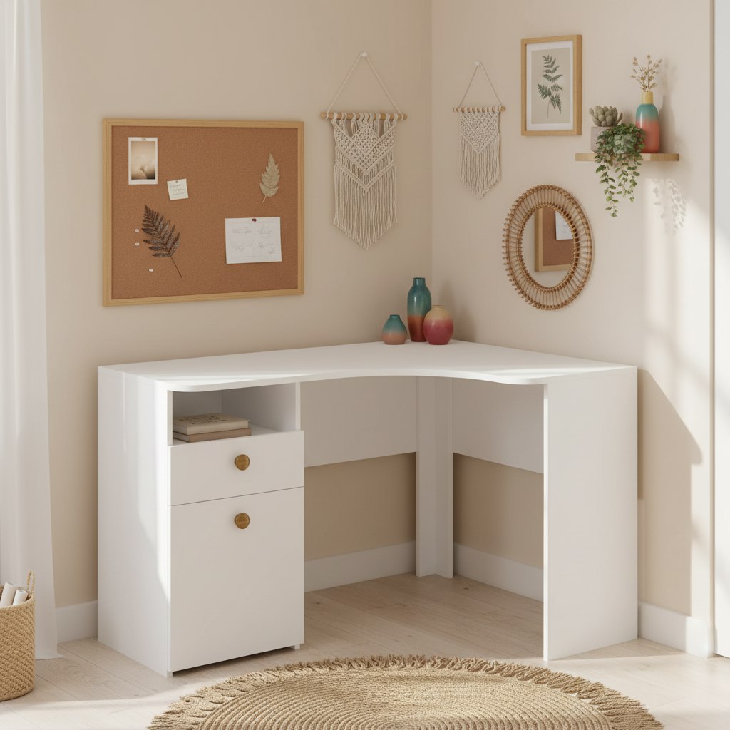 Мебель выполнена из сертифицированного, качественного, экологически чистого ЛДСП класса Е0,5 в белом цвете.