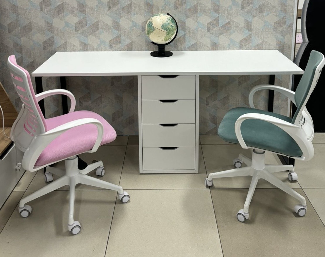 Стол Дуэт 1800 мм (белый + опоры черные). Столешница 22 мм от Династия Kids