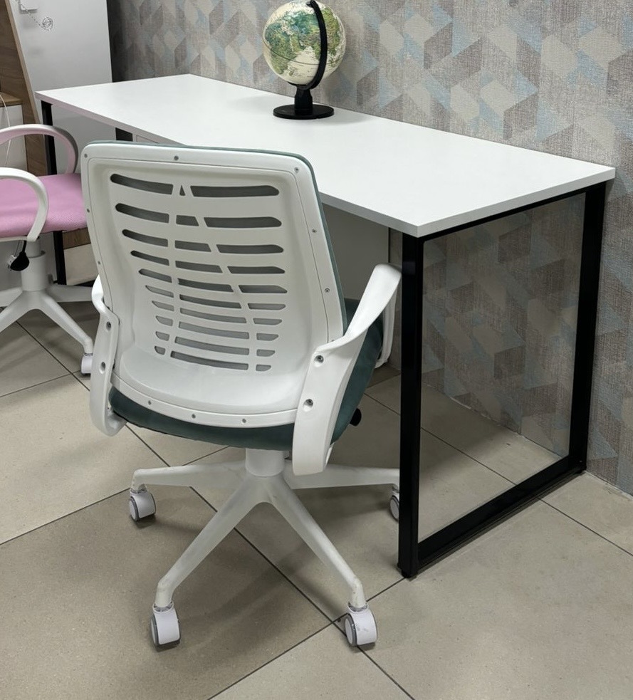 Стол Дуэт 1800 мм (белый + опоры черные). Столешница 22 мм