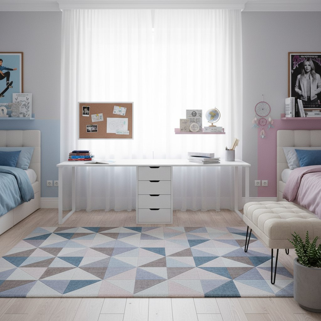 Стол для двоих детей - отличное решение для небольших комнат.