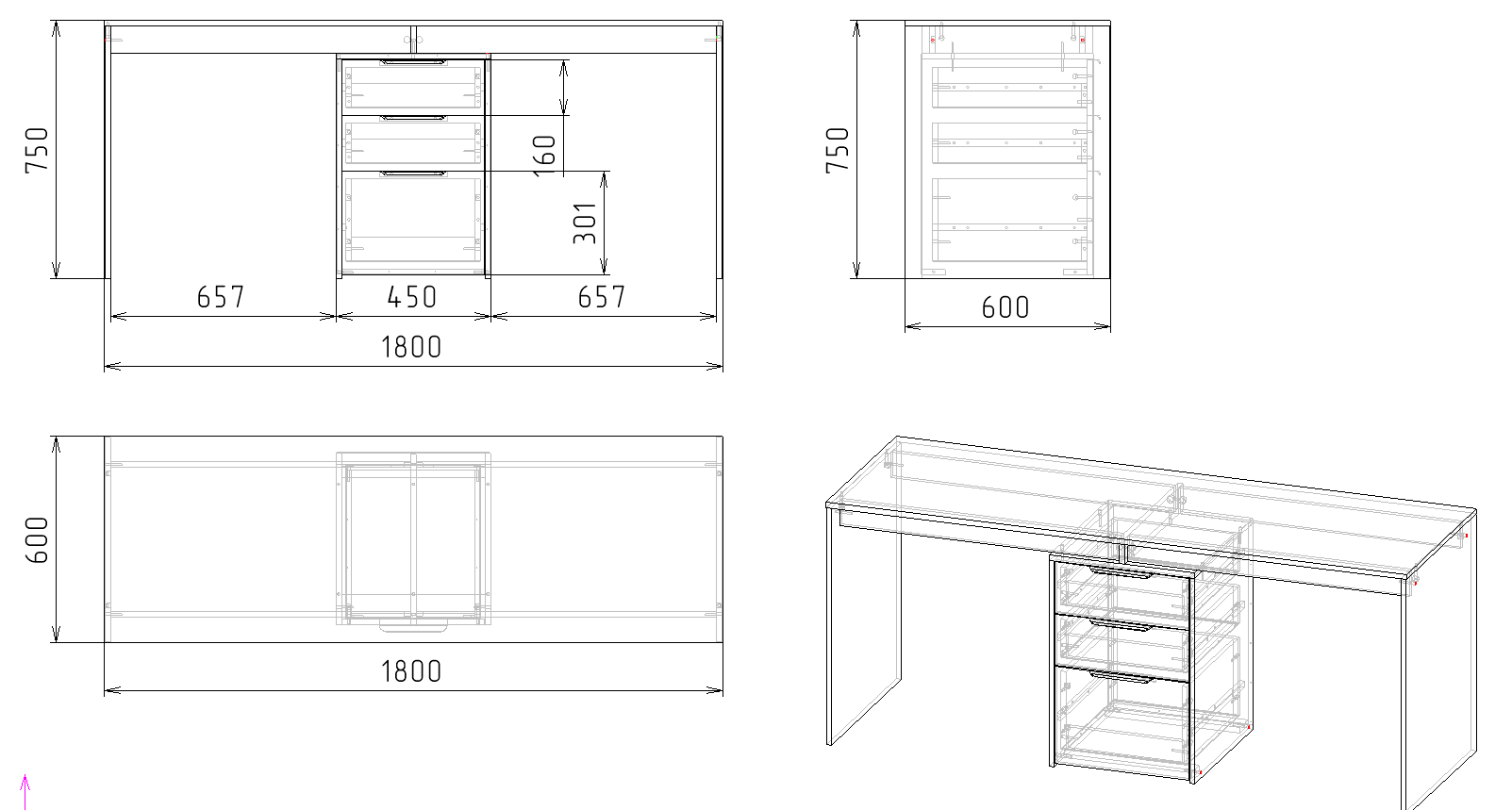 Тумба имеет три выдвижных ящика на шариковых направляющих.