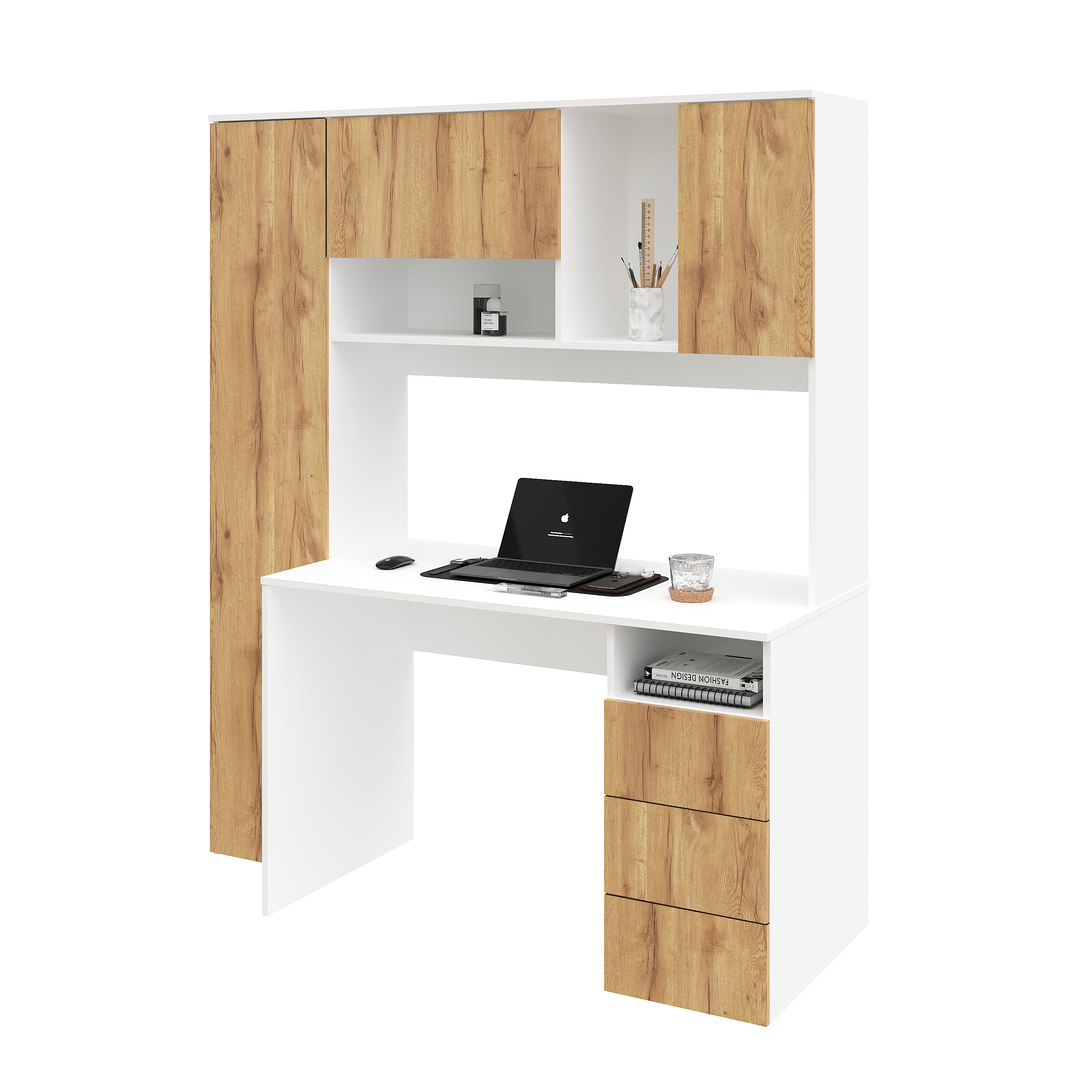 Просторная поверхность, удобные полки и ящики позволят разместить учебники, книги и канцелярию.