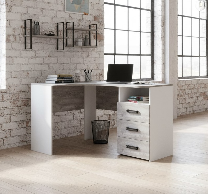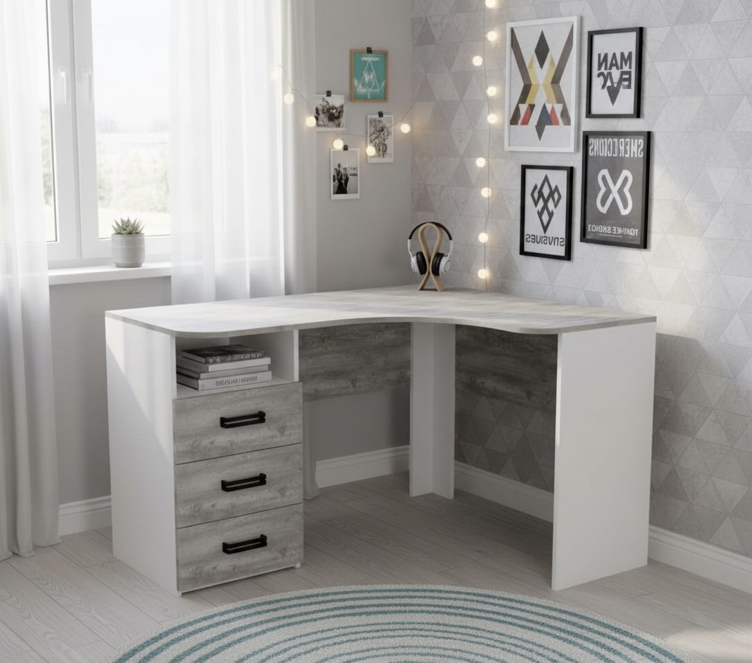 Мебель выполнена из качественного, экологически чистого ЛДСП класса Е0,5 в цветах бетон пайн + белый"
