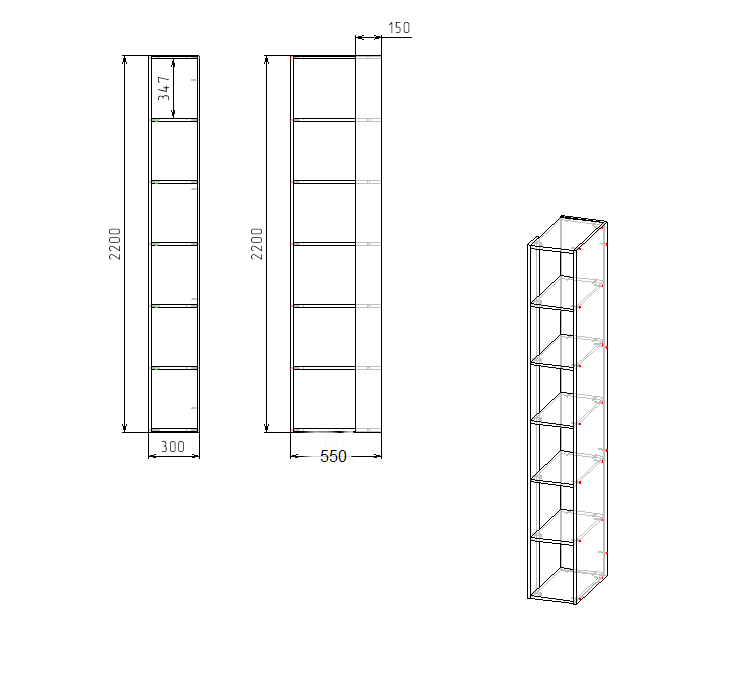 ширина 300 х высота 2200 х глубина 550 мм