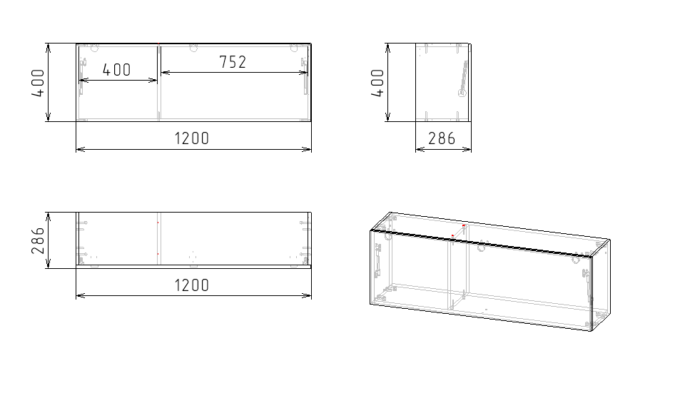 ширина 1200 х высота 400 х глубина 286 мм