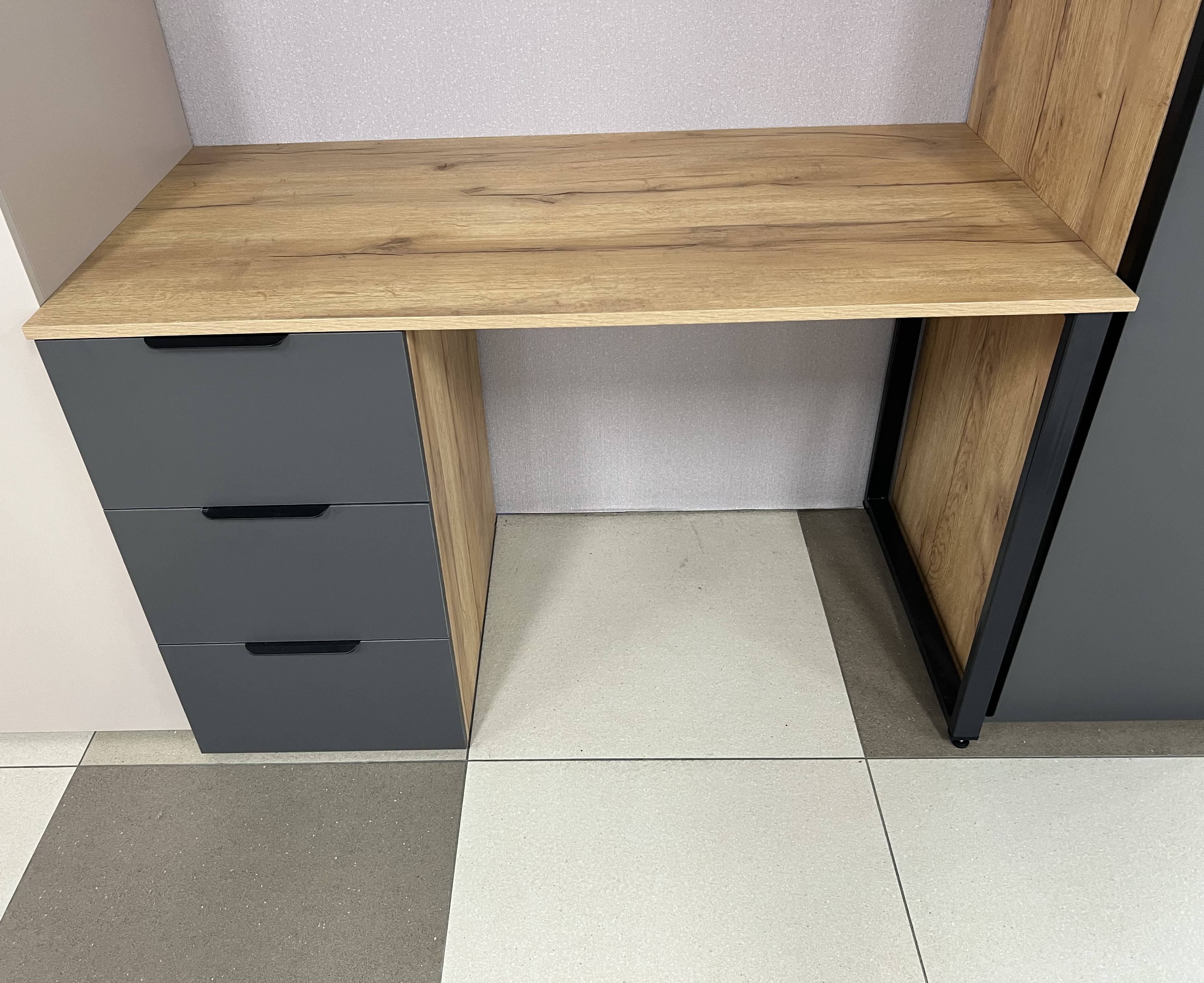 Столешница из прочного и качественного материала устойчива к царапинам и прекрасно справляется с повседневным износом.