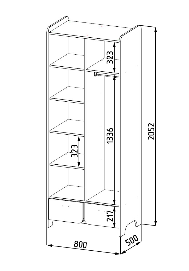 Габариты шкафа: ширина 800, глубина 500, высота 2060 мм