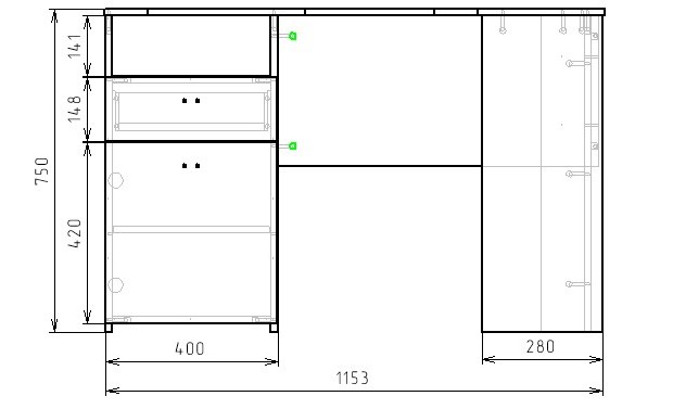 Габариты стола: ширина 1160 х высота 750 х глубина 890 мм