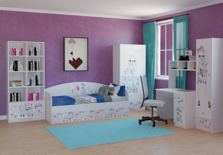 кровать + стол + шкаф + пенал + стеллаж