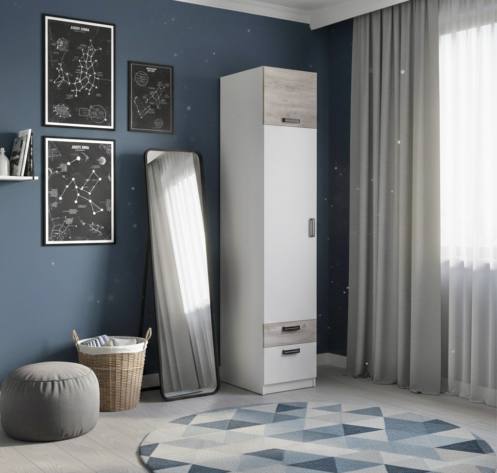Мебель выполнена из сертифицированного, качественного, экологически чистого ЛДСП Е0,5 в сочетании цветов "бетон пайн" + белый.