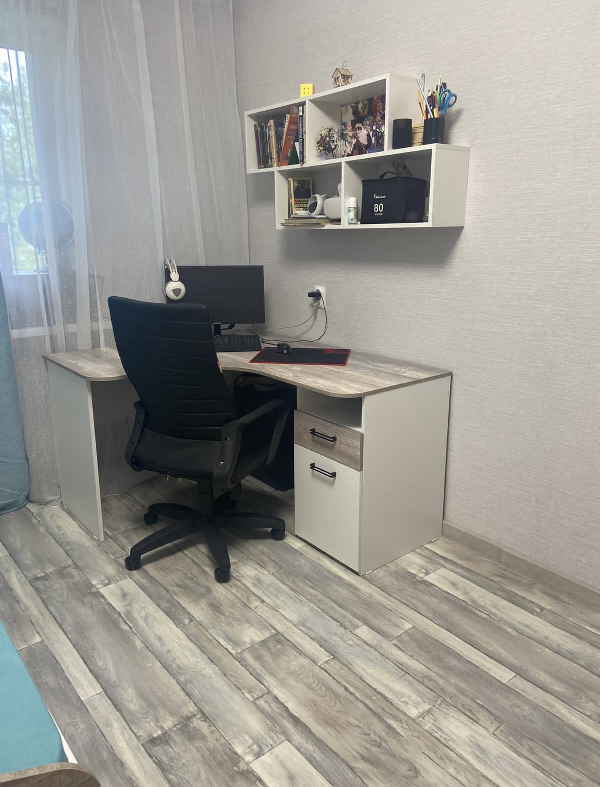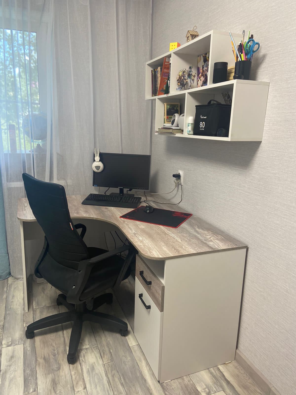 Мебель выполнена из сертифицированного, качественного, экологически чистого ЛДСП класса Е0,5 в сочетании цветов "бетон пайн" + белый.