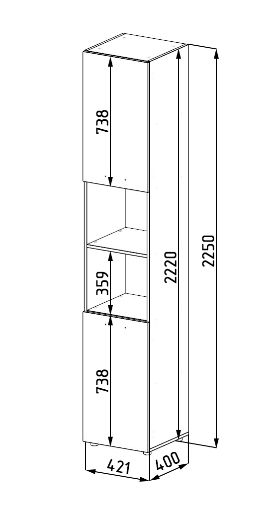 Габариты: высота 2250 х ширина 420 х глубина 420