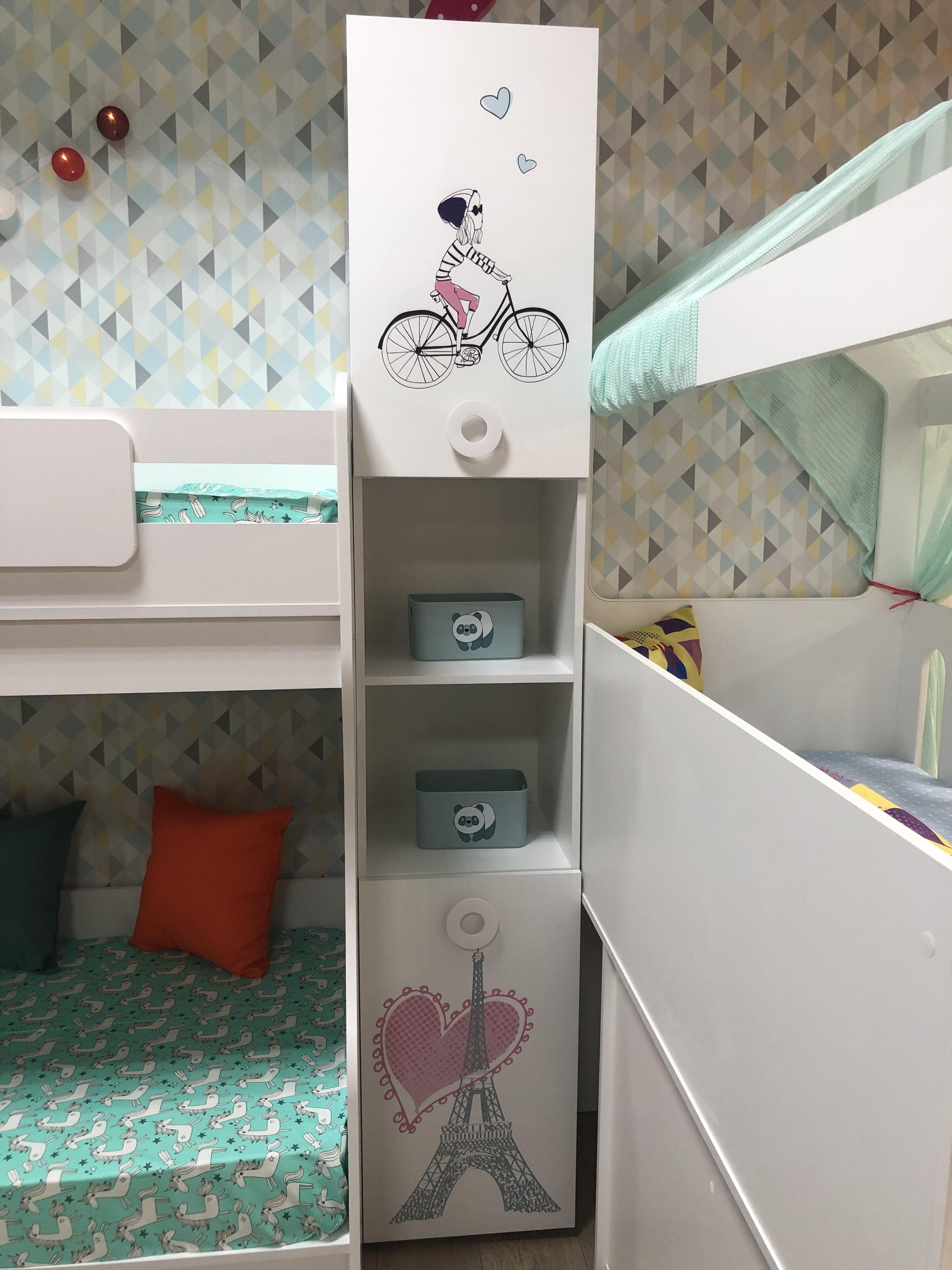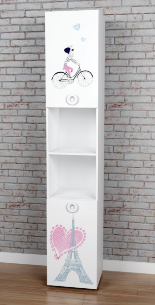 Стеллаж выполнен из сертифицированного, качественного, экологически чистого ЛДСП Е0,5 в белом цвете с дизайнерским принтом на фасадах.