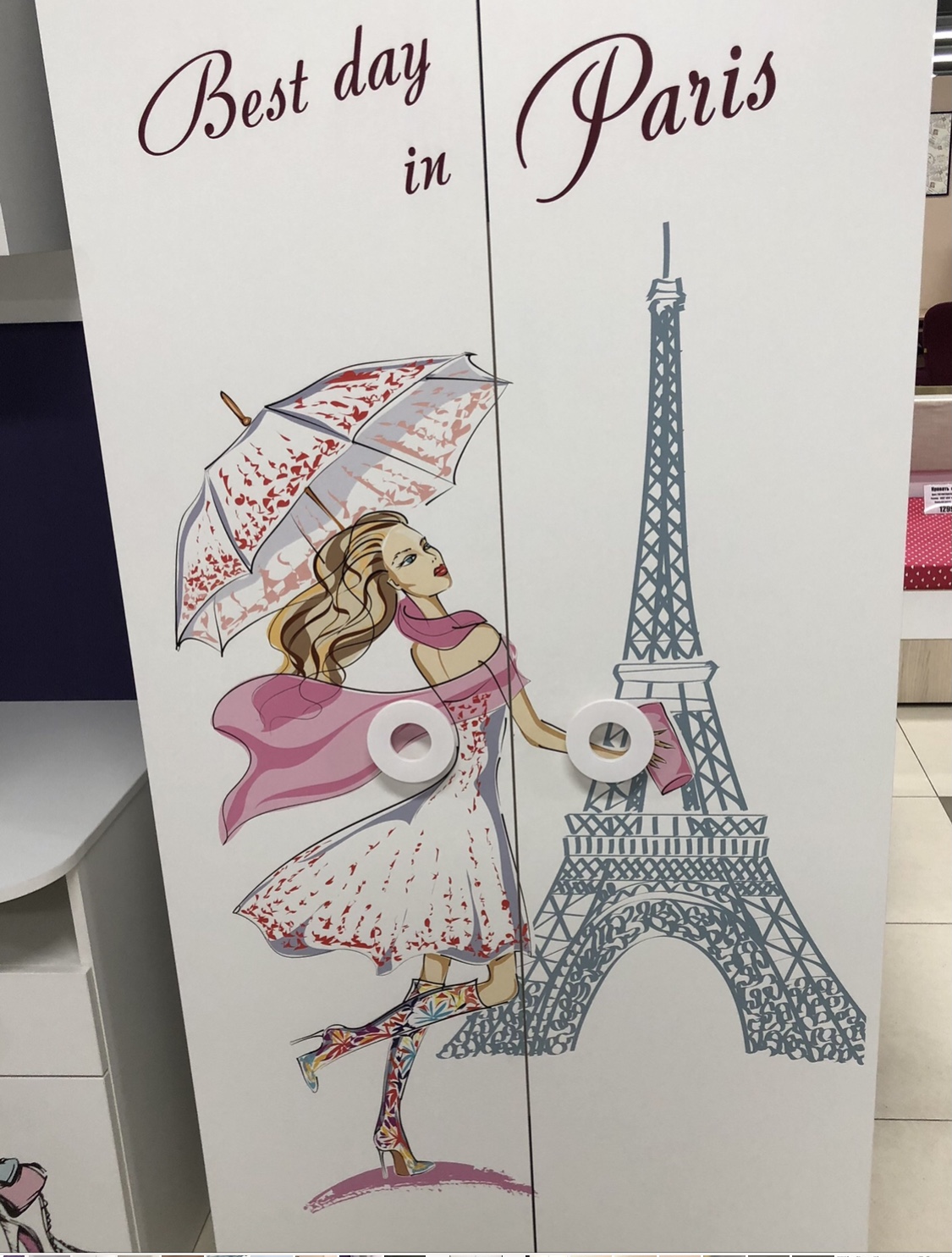Шкаф выполнен из сертифицированного, качественного, экологически чистого ЛДСП Е0,5 в белом цвете с дизайнерским принтом.