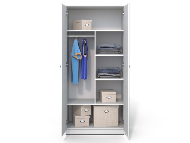 Внутри шкафа имеются штанга для белья, верхние, нижние и боковые полки.
