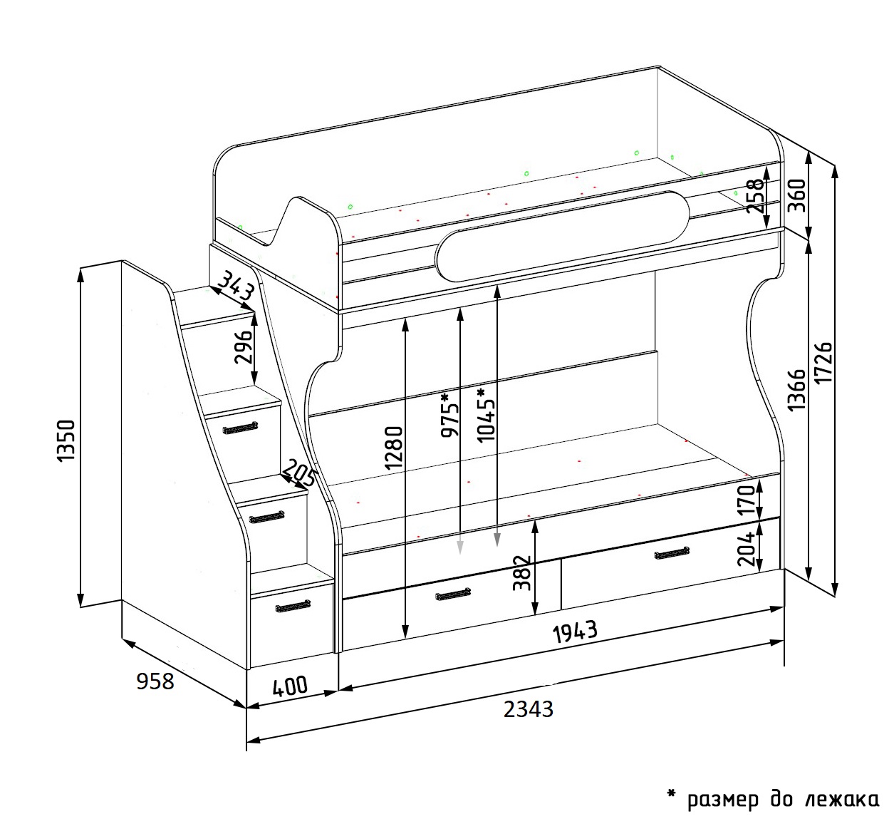 * Дополнительно к нижней кровати можно приобрести съемный бортик ограничитель.