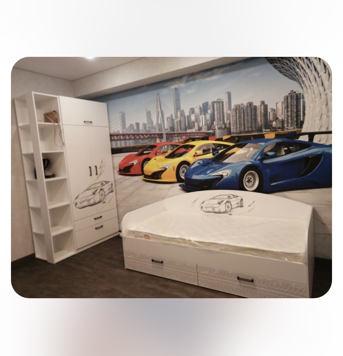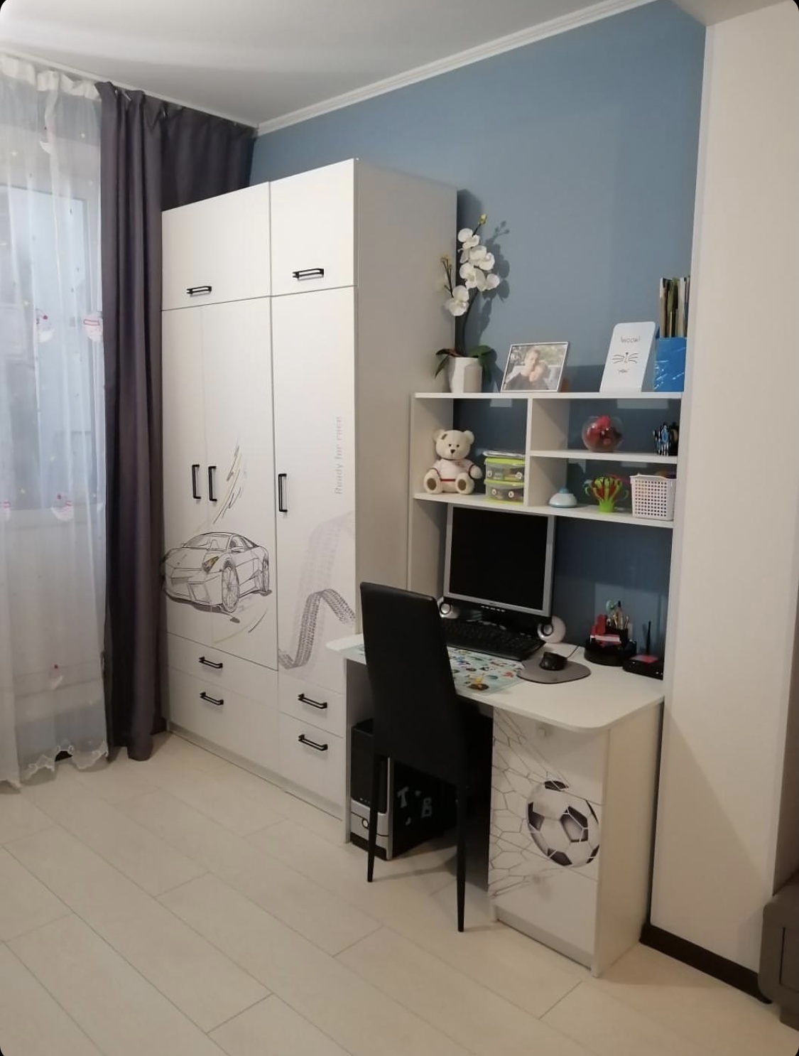 <comment>Купили набором кровать, шкаф, стеллаж. Ждем еще скоро стол). Сын в восторге! Все ящики бесшумные, с доводчиками. Мебель прочная и красивая. Без запаха. Матрас очень хороший! Не пожалели, что выбрали вас </comment>