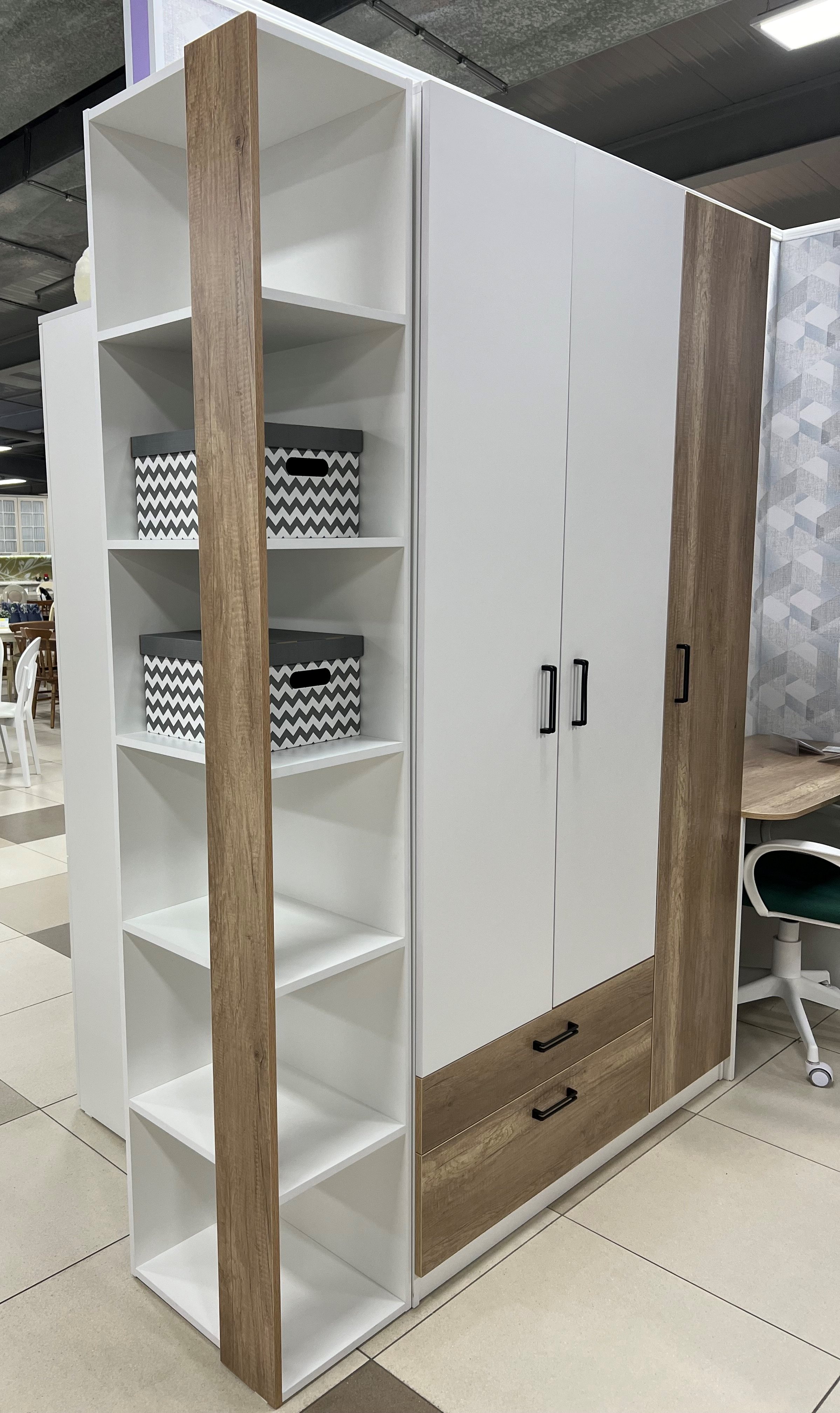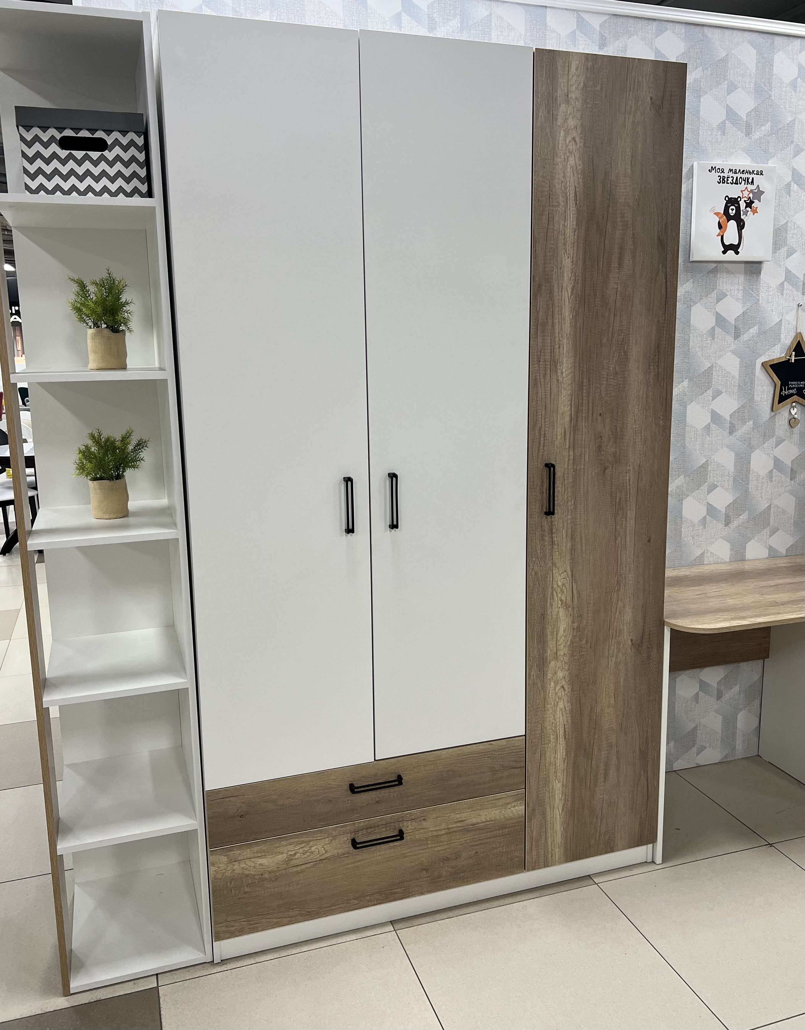 Мебель выполнена из качественного, экологически чистого ЛДСП в сочетании цветов "дуб каньон + белый"