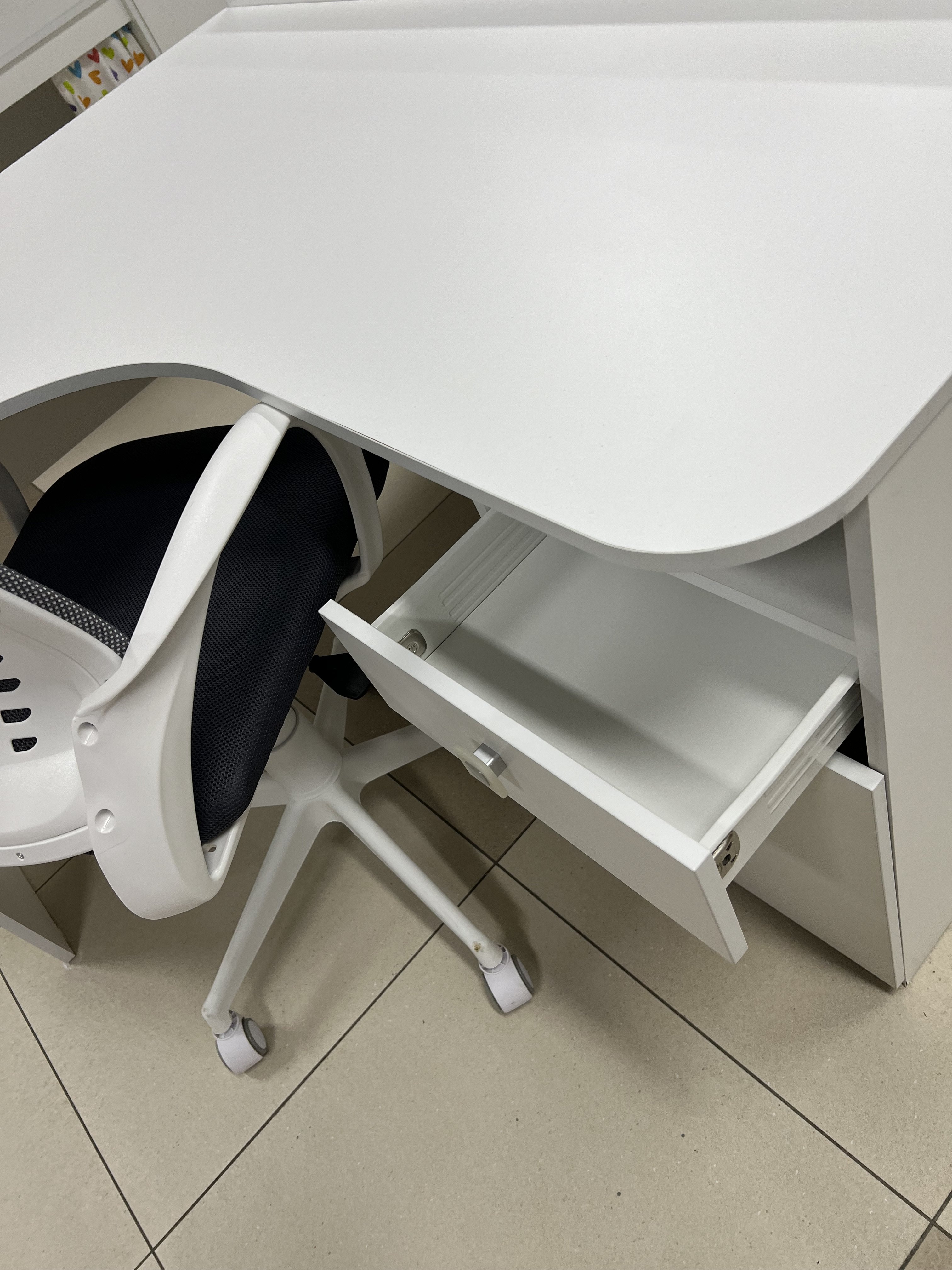 Мебель выполнена из сертифицированного, качественного, экологически чистого ЛДСП класса Е0,5 в белом цвете.