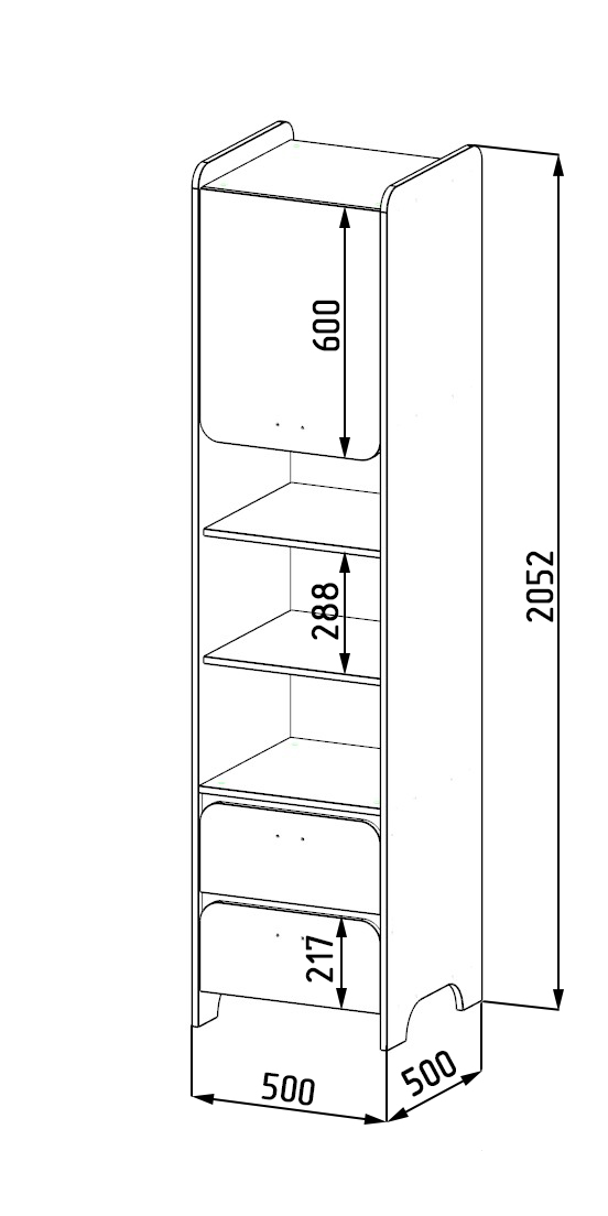 Габариты пенала: ширина 500, глубина 500, высота 2060 мм