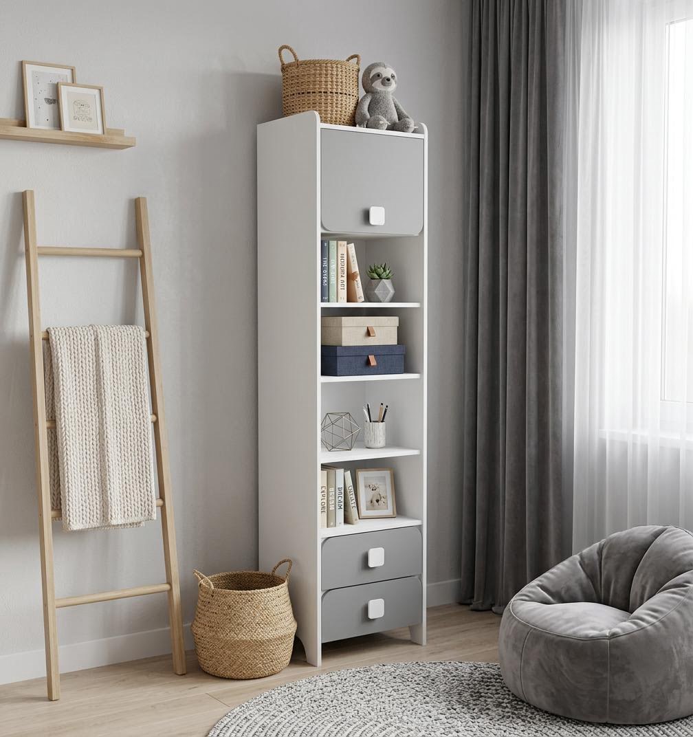 Материал: сертифицированное, качественное, экологически чистое ЛДСП класса Е0,5 в цветах серебро + белый
