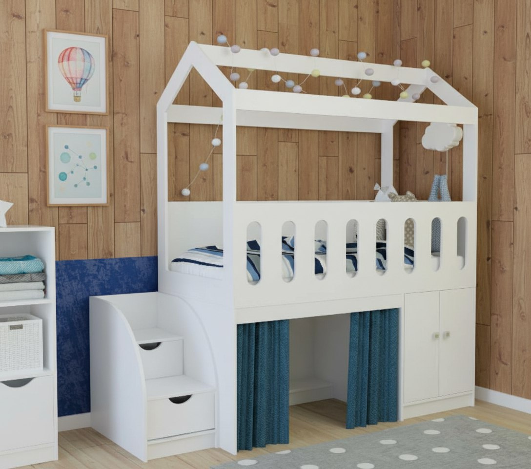 <virtues>Обалденный домик! Доча в восторге. Очень удобный и функциональный. Шкафчик очень вместительный, в лесенке тоже есть ящички. Спасибо вам огромное за такую красоту! </virtues>