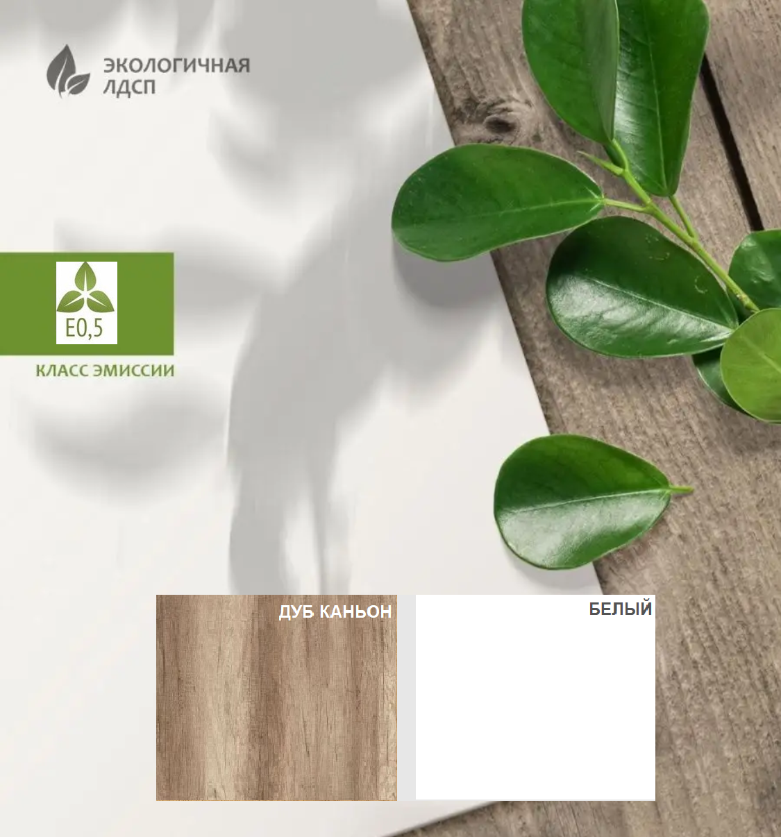 Мебель выполнена из сертифицированного, качественного, экологически чистого ЛДСП класса Е0,5 в сочетании цветов дуб каньон + белый.