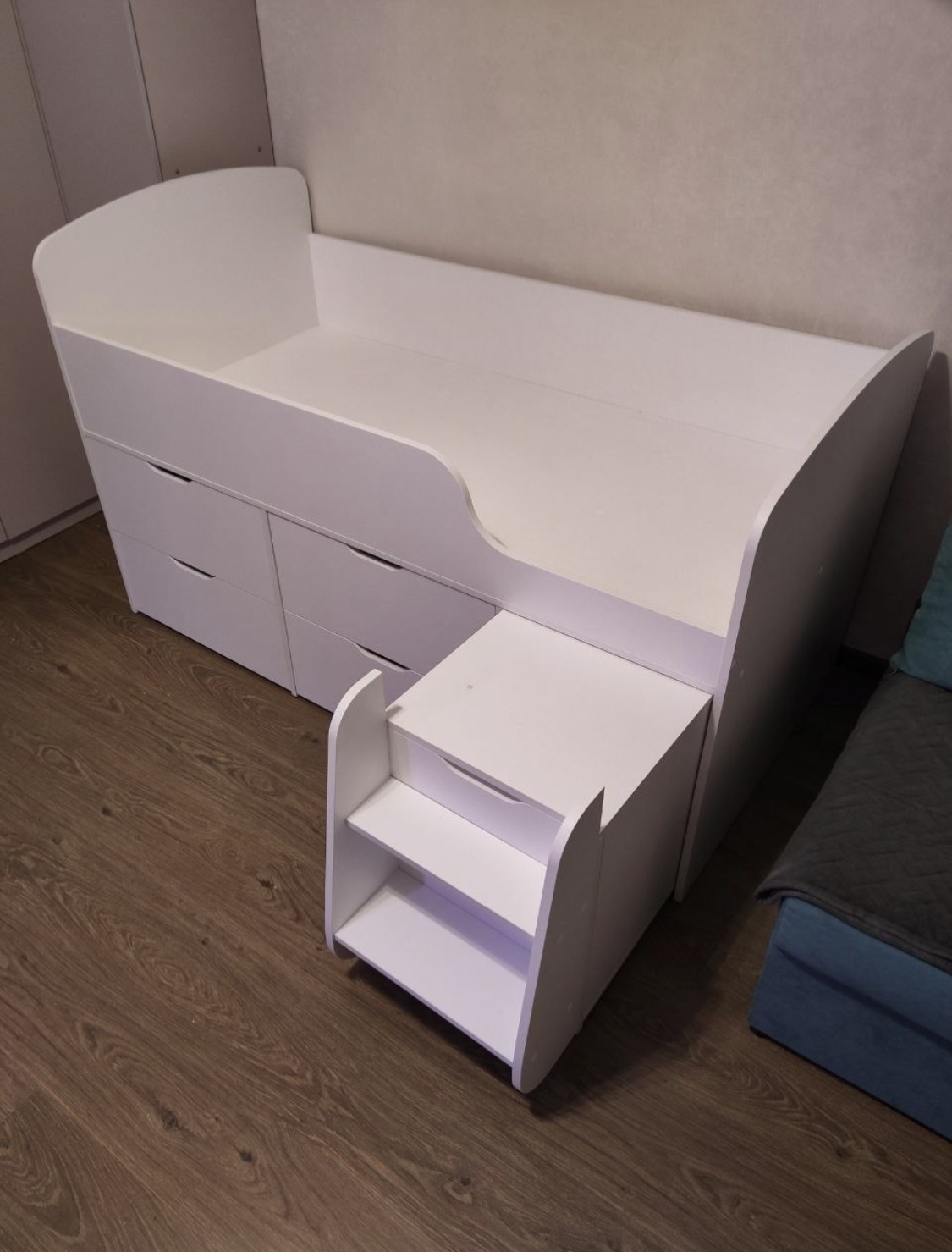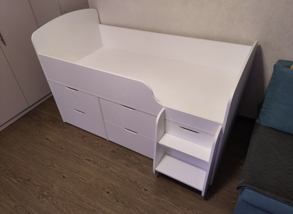 Вместо них - цельный и прочный настил из ЛДСП, который выдерживает сверхвысокую нагрузку и позволяет расположиться даже взрослому с ребенком.