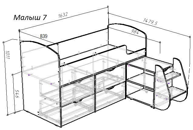 Компактная кровать-чердак Малыш 7 создана специально для небольших помещений.