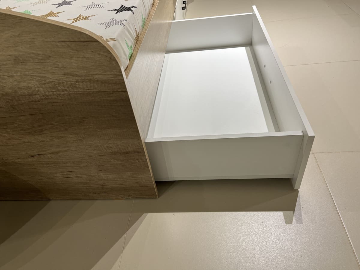 Вместо них - цельный и прочный настил из ЛДСП, который выдерживает сверхвысокую нагрузку и позволяет расположиться даже взрослому с ребенком.