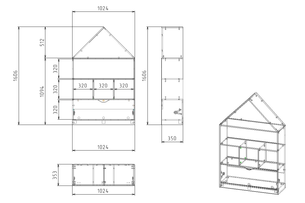 Габариты Домик 1: высота 1606, глубина 350, ширина 1024 мм