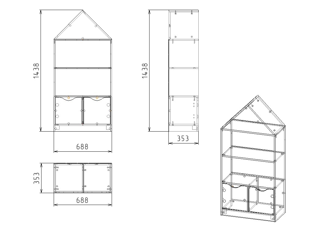 Габариты Домик 3: высота 1438, глубина 350, ширина 688 мм